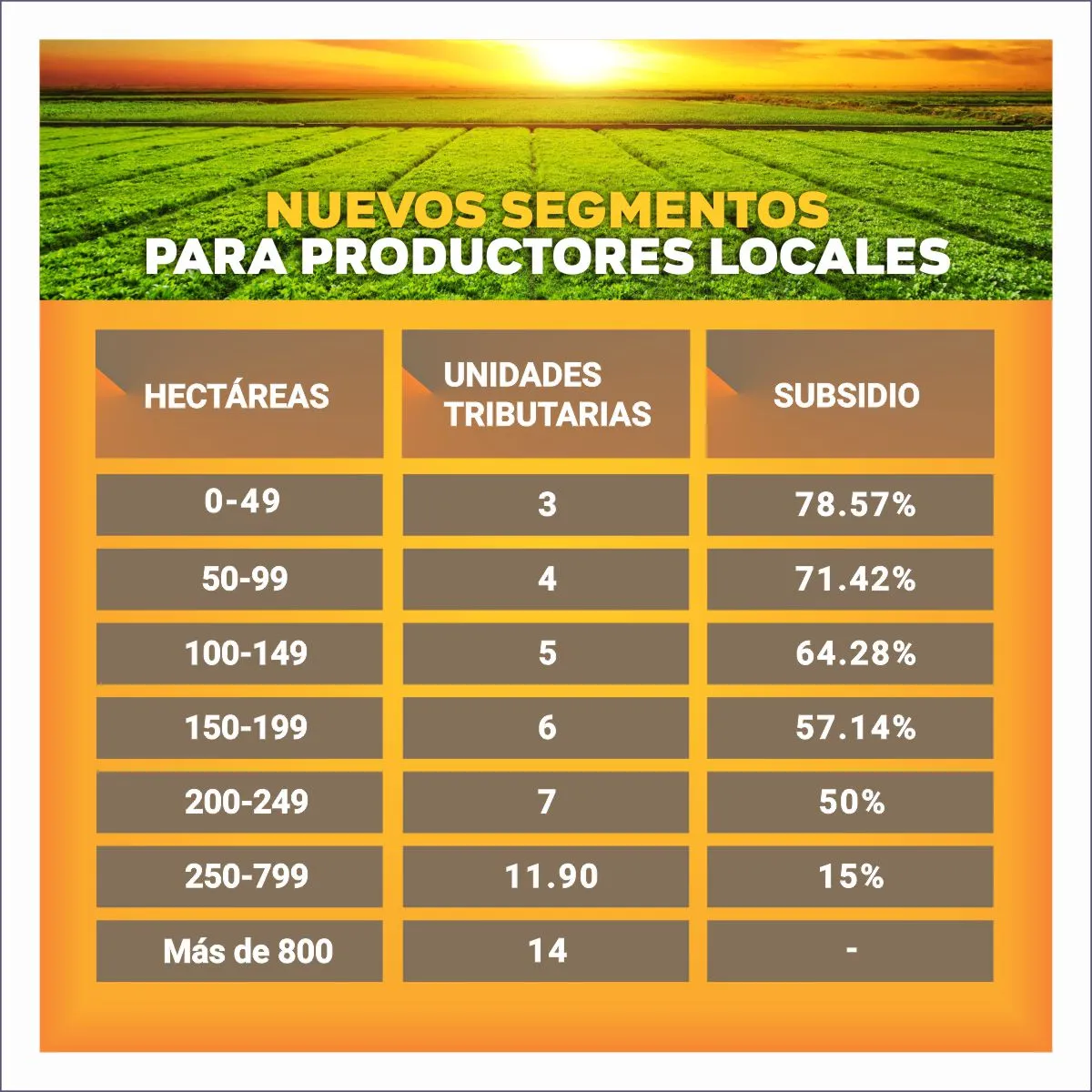 El diseño tributario contempla bonificaciones por arraigo y tramos según superficie. Un pequeño productor de 50 hectáreas que vive en María Teresa paga tres unidades tributarias, mientras que uno que no reside en la localidad paga catorce.