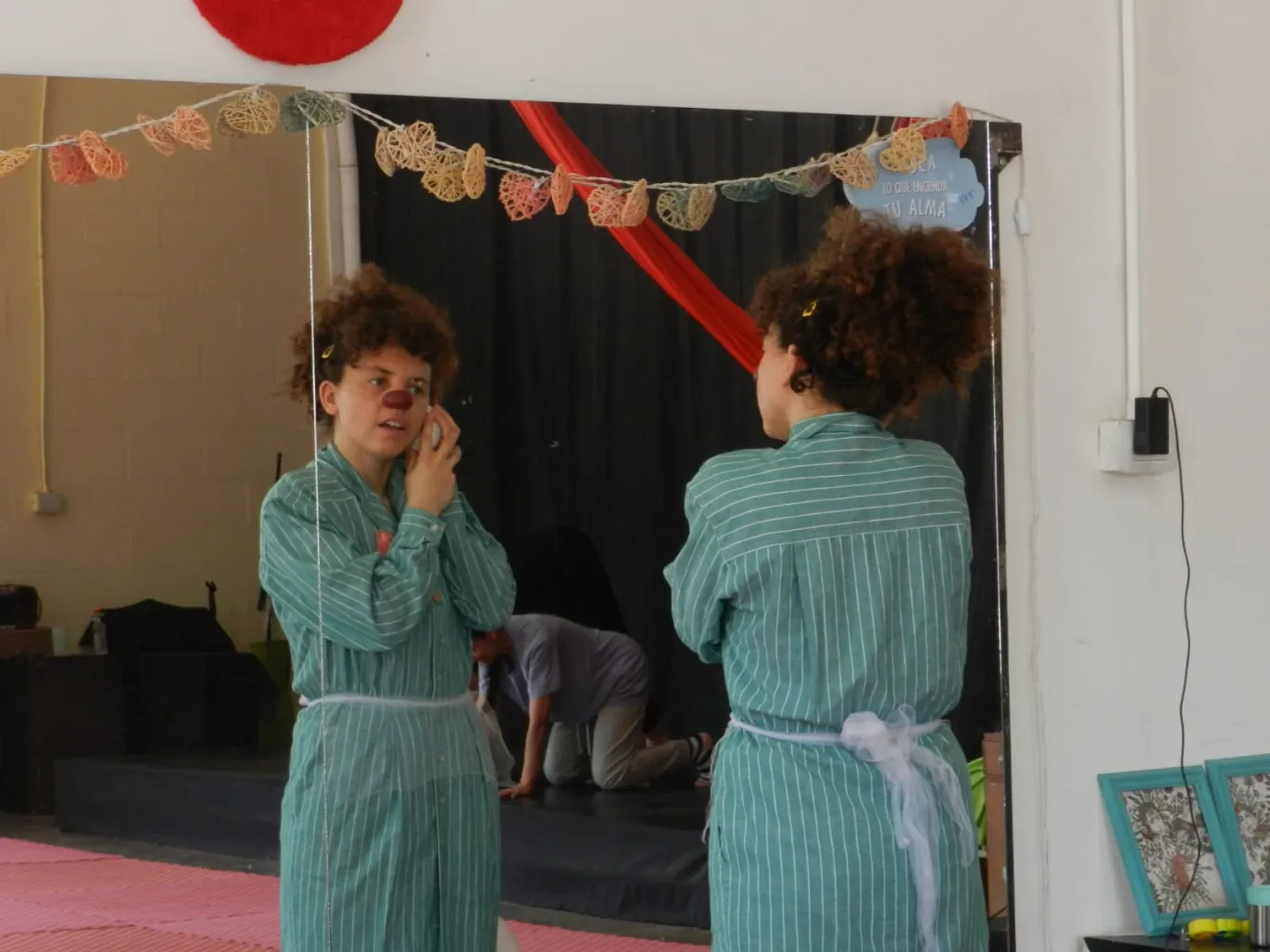 Erica explica con precisión qué es el clown. “No es un actor que se hace de payaso. El clown se desarrolla a partir de una misma, desde nuestras frustraciones, nuestras características físicas y emocionales”. No es un personaje externo. “Es el ser. A través de la nariz nos permitimos ser más, pasar límites, fantasear”.