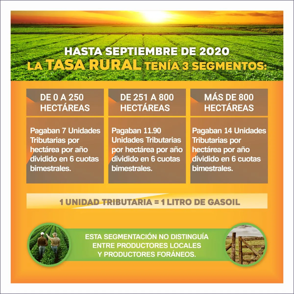 El diseño tributario contempla bonificaciones por arraigo y tramos según superficie. Un pequeño productor de 50 hectáreas que vive en María Teresa paga tres unidades tributarias, mientras que uno que no reside en la localidad paga catorce.