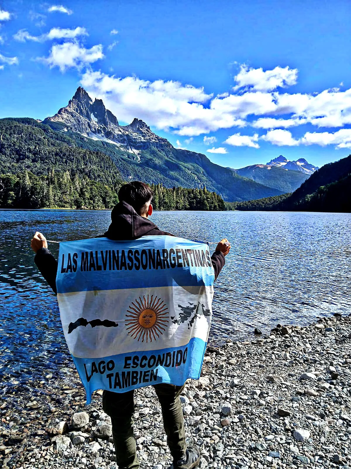En ese tramo, cuenta una conquista que lograron incluso con trabas. “La policía nos había dicho que eso está prohibido”, pero subraya que “está en la constitución” que “como argentinos podemos navegar libremente por los lagos”, tomando “las medidas necesarias”. En esa línea, lo dice con orgullo sereno. “Lo hicimos, de hecho, eso fue una conquista.” Y resume la postal que buscaban dejar como mensaje político. “Navegamos con los kayak, levantamos la bandera argentina, que es la bandera que debería flamear siempre ahí.”