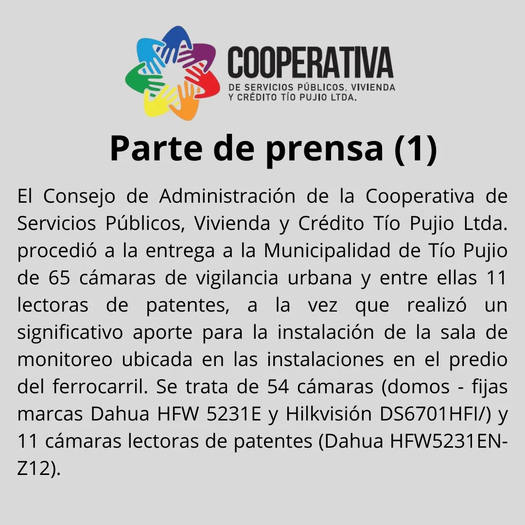 La cooperativa destacó que este acuerdo, convertido ya en vínculo sostenido, representa una acción firme hacia la prevención, la vigilancia y la seguridad de la comunidad. Subrayó además que la iniciativa marca un punto referencial en el trabajo mancomunado entre la economía social y el Estado local, demostrando que la articulación entre cooperativas y gobiernos permite construir caminos hacia más bienestar y mayor calidad de vida para los vecinos de Tío Pujio.